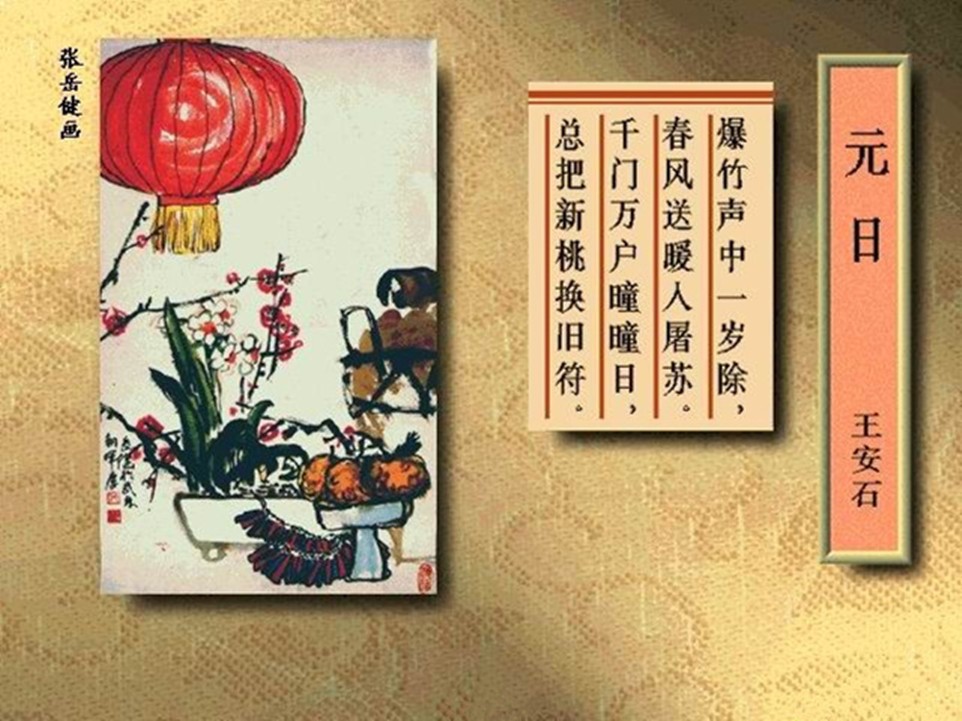爆竹声中一岁除,春风送暖入屠苏,