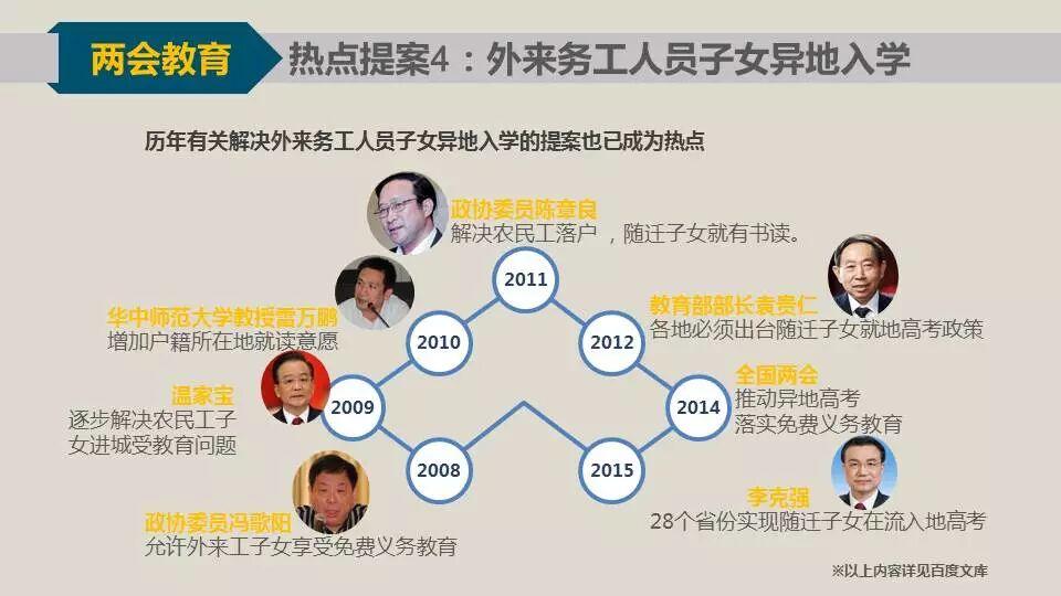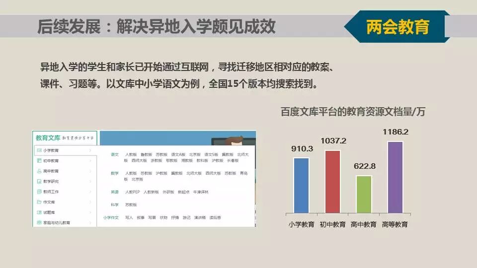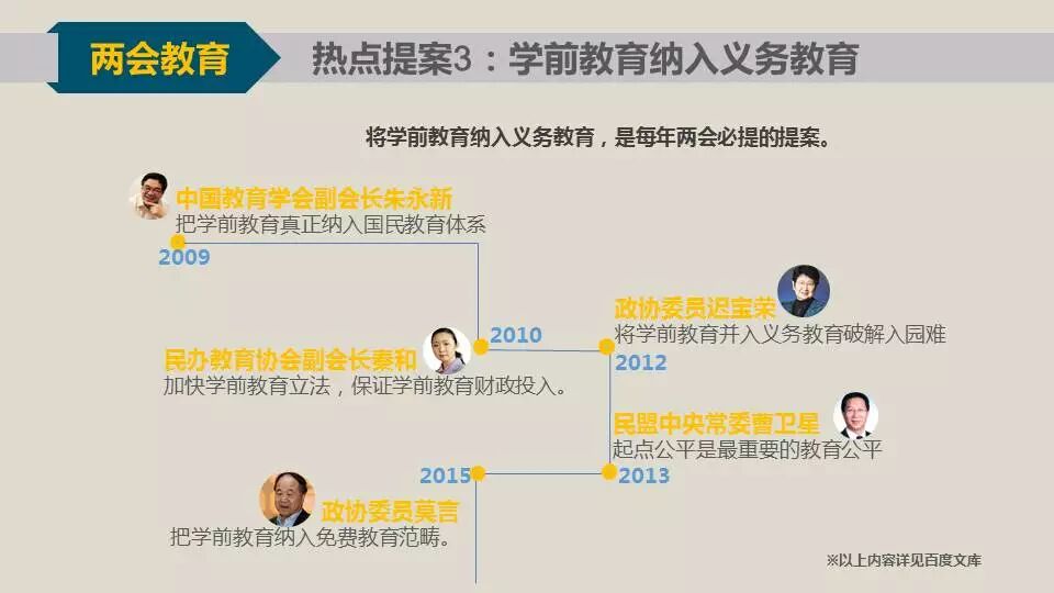 毋庸置疑,学前教育、异地入学、教育公平等一系列问题同样也是国家关心的问题。两会后,国家发布哪些教育新举措,而谁又能成为解决教育问题的新助力?百度文库结合平台亿份文档数据资料,深入分析近年两会教育提案,整理两会委员意见,追踪后续进展,全面解析当今教育改革进程!