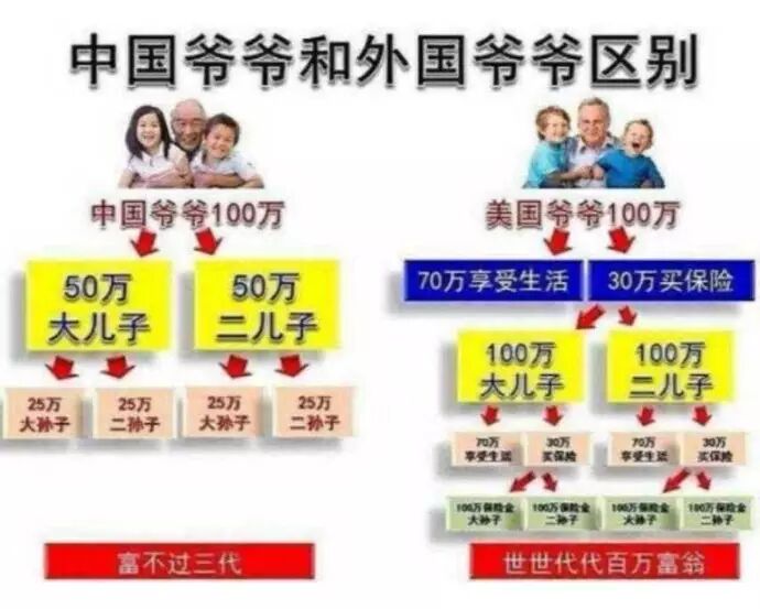 于是,当孩子长大接手父亲的财富以后,不知道珍惜和努力。应了古语的“富不过三代!”