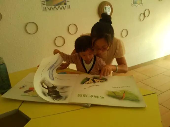 卢海红的亲子阅读来得更早,胎教时就开始了,抚着肚皮,给肚子里的宝宝大声读故事。这源于卢海红从小爱阅读的习惯,她说她本来是个内向敏感的女孩,因为一直爱读书,一直有书的温暖,她才成为了今天自己喜欢的样子。儿子出生6个月后,卢海红筹办了乐童中英文绘本馆,希望把亲子阅读的喜悦和幸福传播给更多的家庭。如今儿子2岁多了,每天都会定时要求妈妈读书讲故事,小小年纪的他在熟人圈里已“小有名气”:讲话一套一套的,有问有答,逻辑性强,完全不像一个不到3岁的小孩。而其实,卢海红并不为这些感到特别骄傲,因为她觉得,阅读就像是播种,她并不刻意希望立即看到效果,因为种子发芽本来就需要一个过程。她只是很在乎、珍惜与儿子的共读时光,这是一种高品质的陪伴,是自己能给予孩子的最大的安全感。“安全感是妈妈在0-3岁时给孩子的盘缠,如果给得不够,孩子长大后就会一直处于安全感的索取中。”卢海红说。不刻意去“给”,摒弃功利性阅读而就连这样的“给”,卢海红也觉得要给得自然,不能刻意,不然,孩子会觉得是负担,会滋生浮躁。所以,她也从来不问孩子“在故事里学到了什么”。晋·陶潜《五柳先生传》有言:“好读书,不求甚解;每有会意,便欣然忘食。”卢海红同样相信,阅读是一个缓慢的品格培养过程,这些能量都存储在孩子的脑海里,当某一天、某一时,孩子处于一个似曾相识的境况中,他的记忆闸门就会自然而然开启,那些积累许久的能量就会喷涌而出。有时候,卢海红坐在店面中往外看,门前这条“培训街”每天都穿梭着忙碌的家长和孩子,恍惚中似乎感到他们从未停下过奔忙和索求。“这时我就会想起一句诗:‘请停一停你的脚步,等一等你的灵魂……’”卢海红说,她便是以亲子阅读的方式,