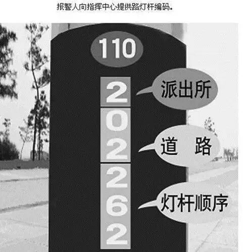 深圳的路灯杆上均钉上了铭牌,其中一组数字由路灯管理部门掌控,另一组包含纯数字编码和110标识,倘若路人报警说不清方位,则可以迅速找到最近的路灯杆,报上路灯杆上和110在一起的数字,警方可以很快锁定报警人的方位。